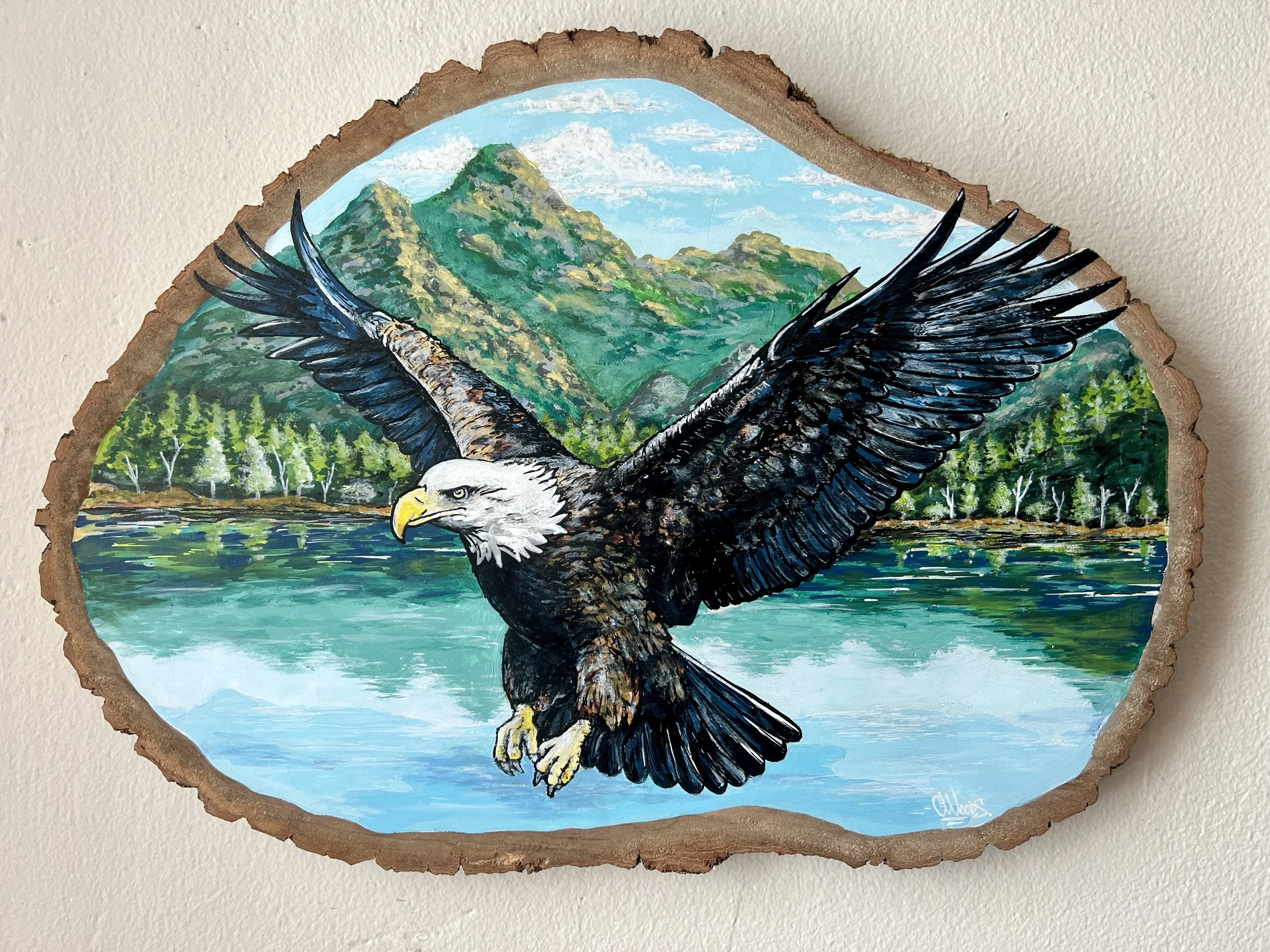 Bald Eagle - Acrylic on Oak round 18”x10”