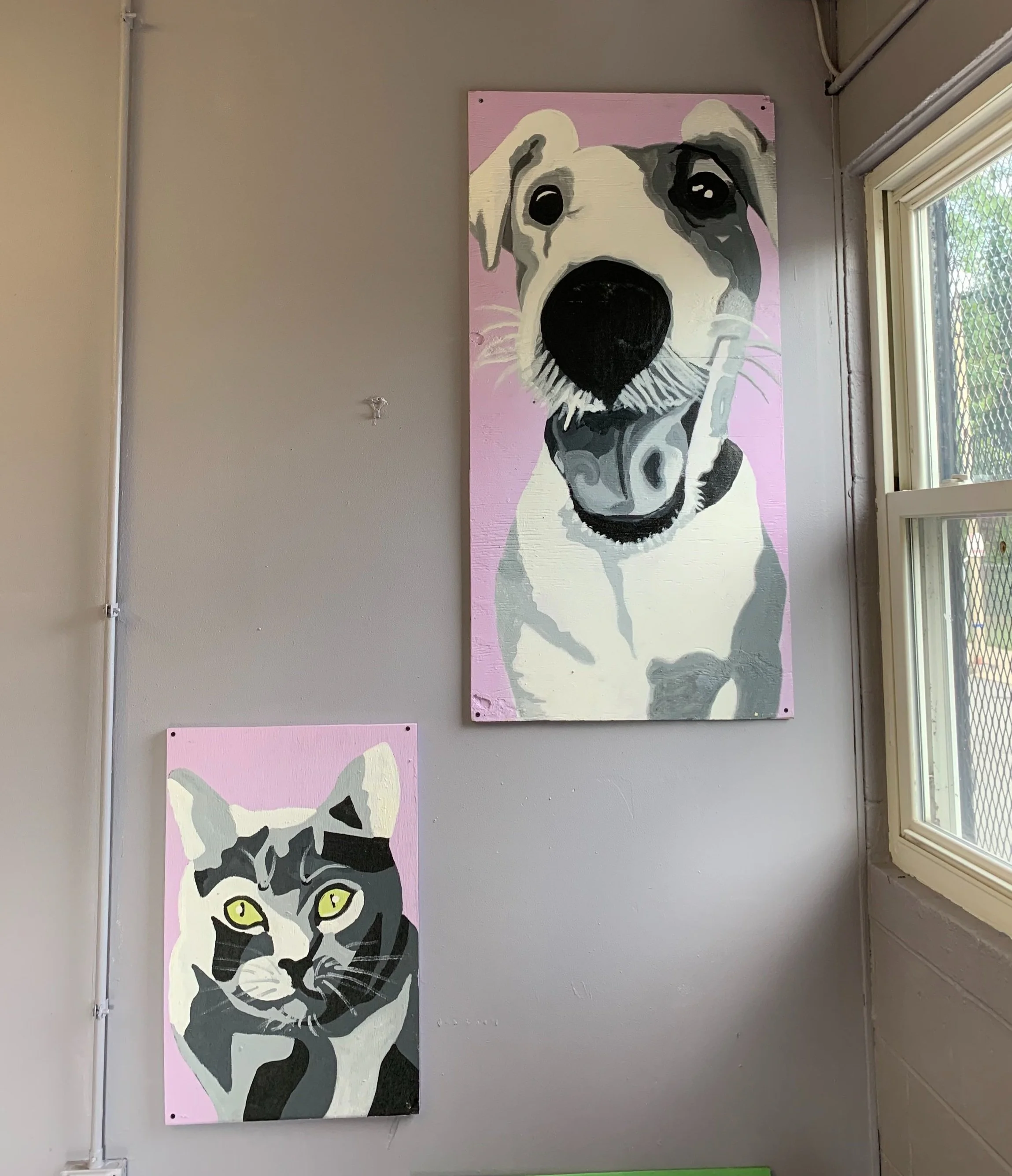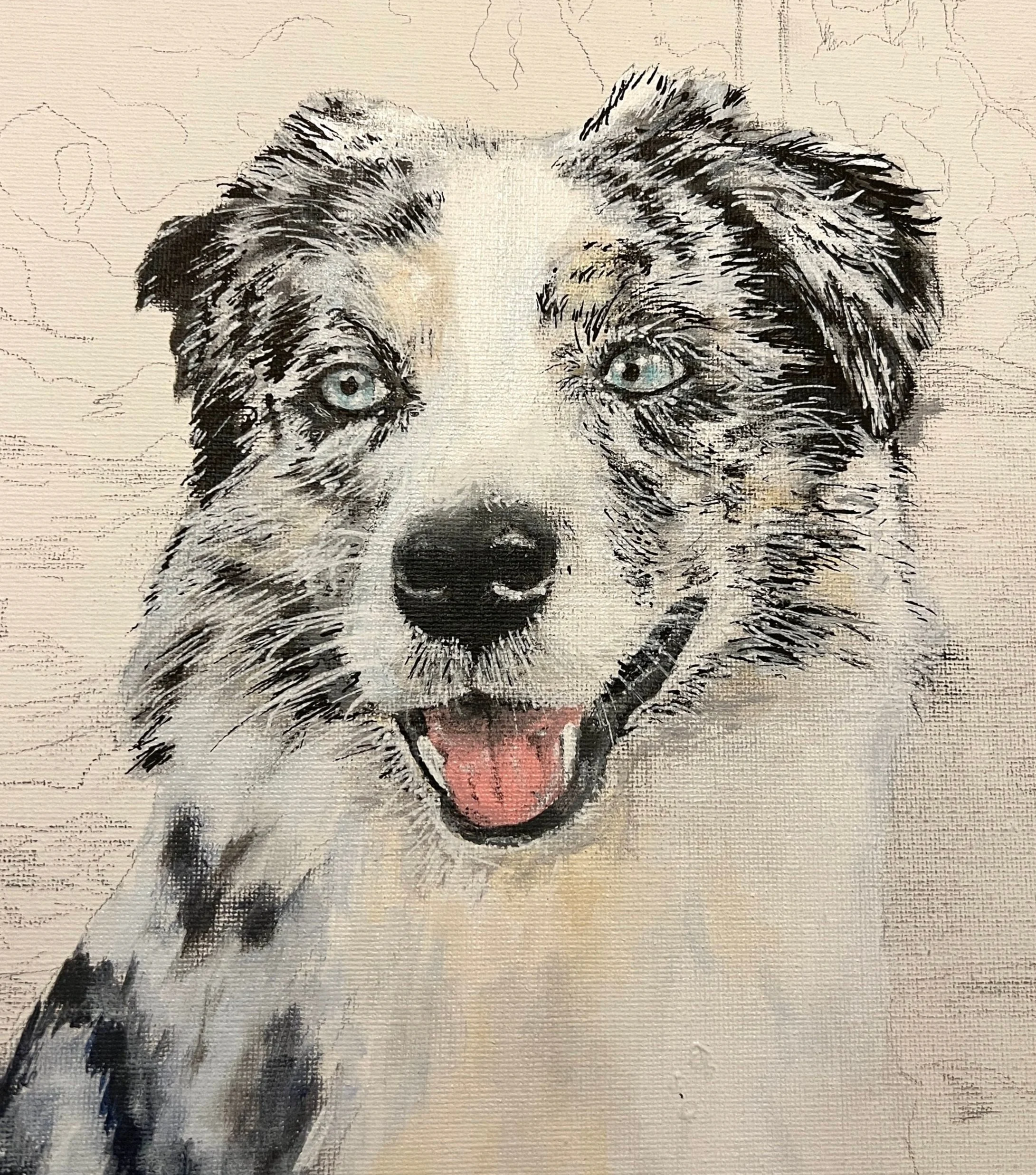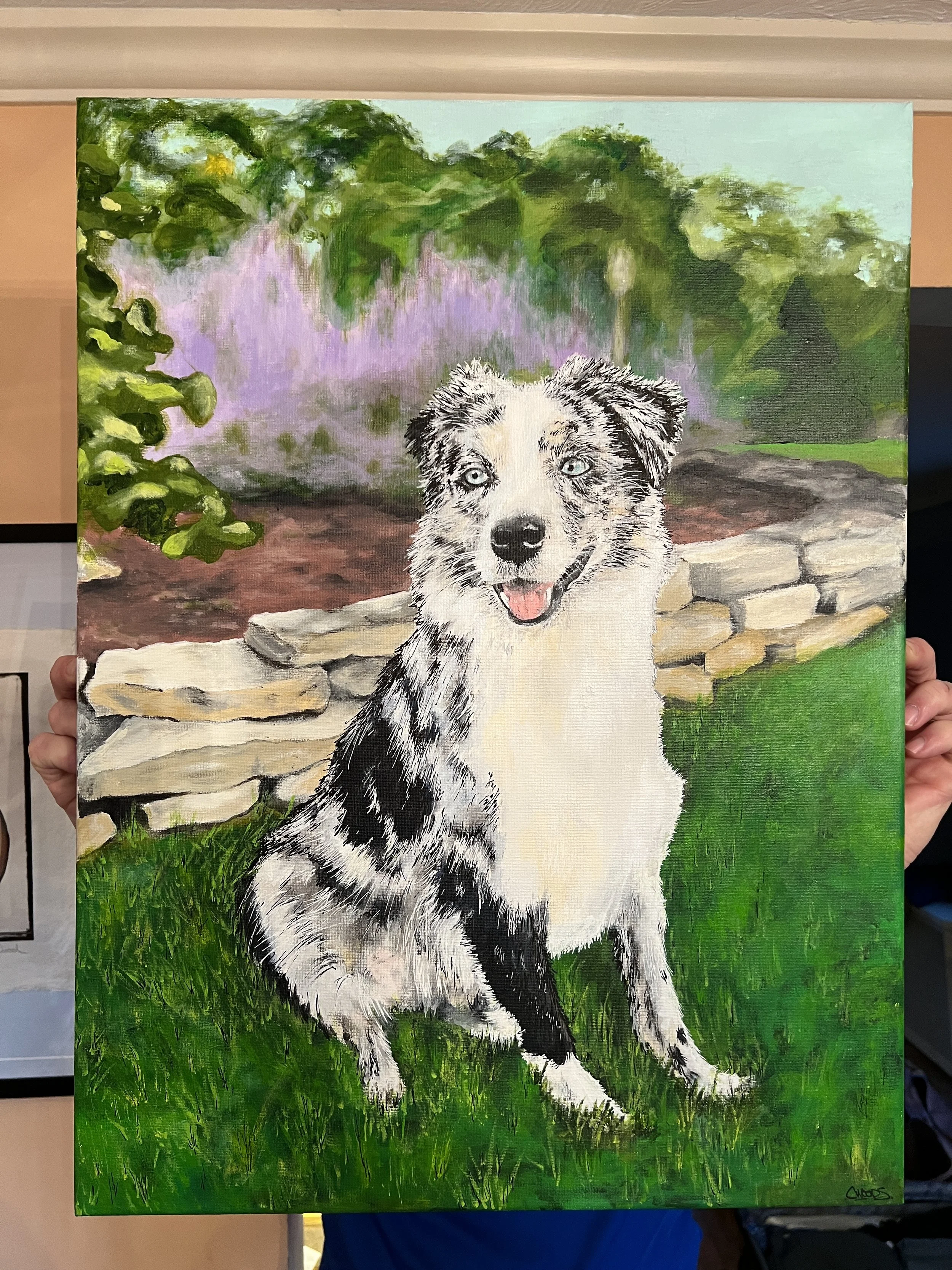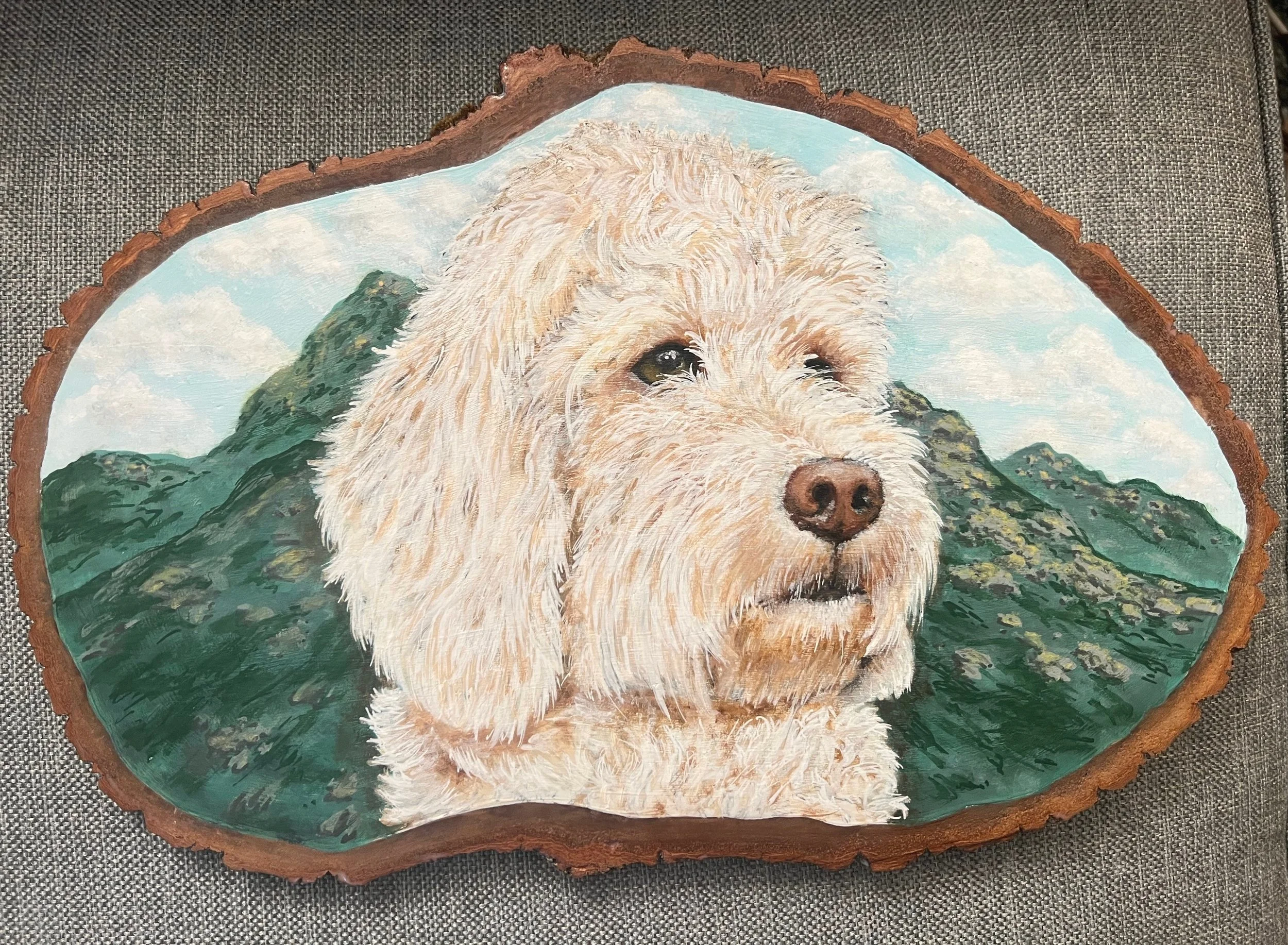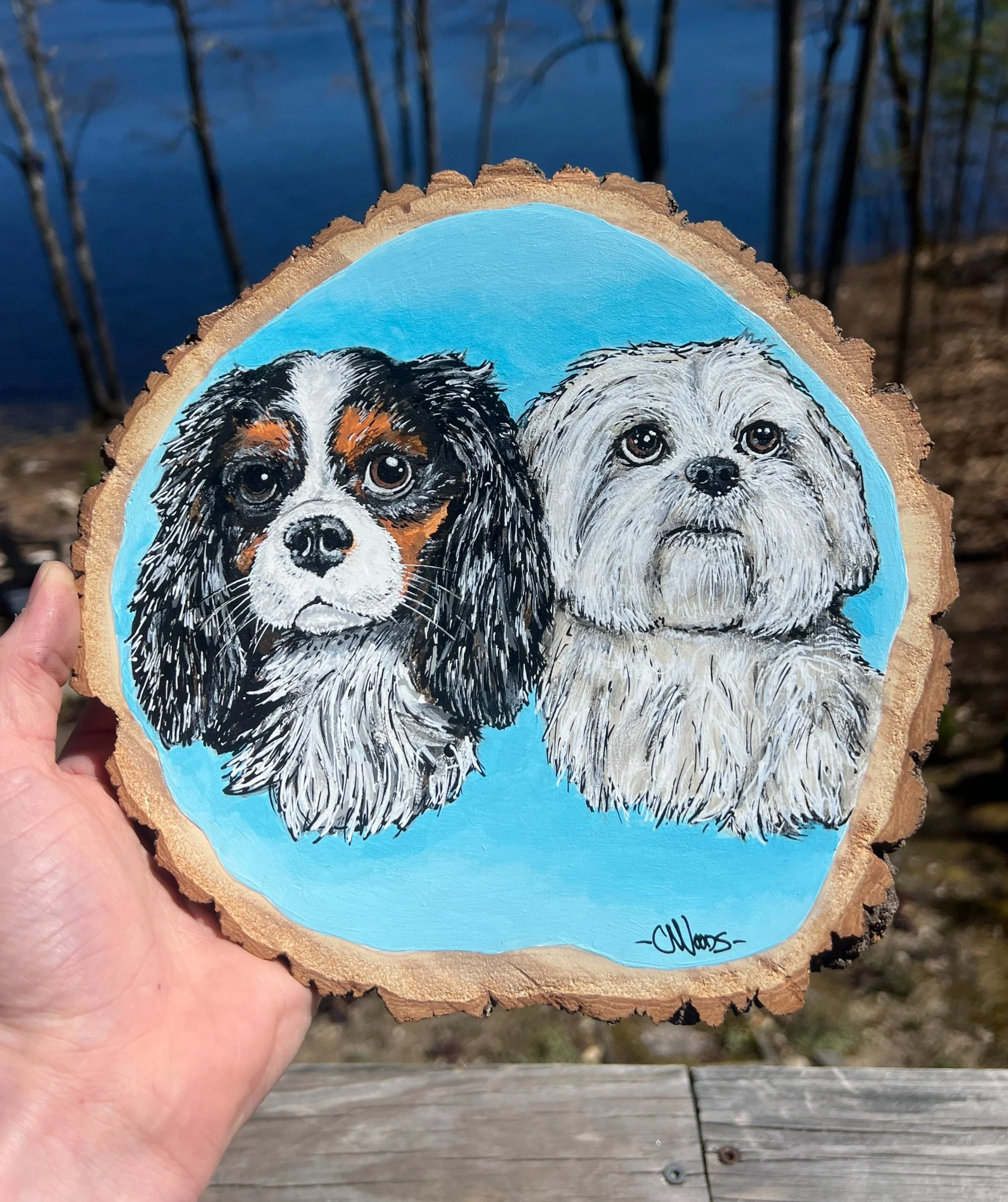 Dees Dogs - Acrylic on Oak round 10”x10”