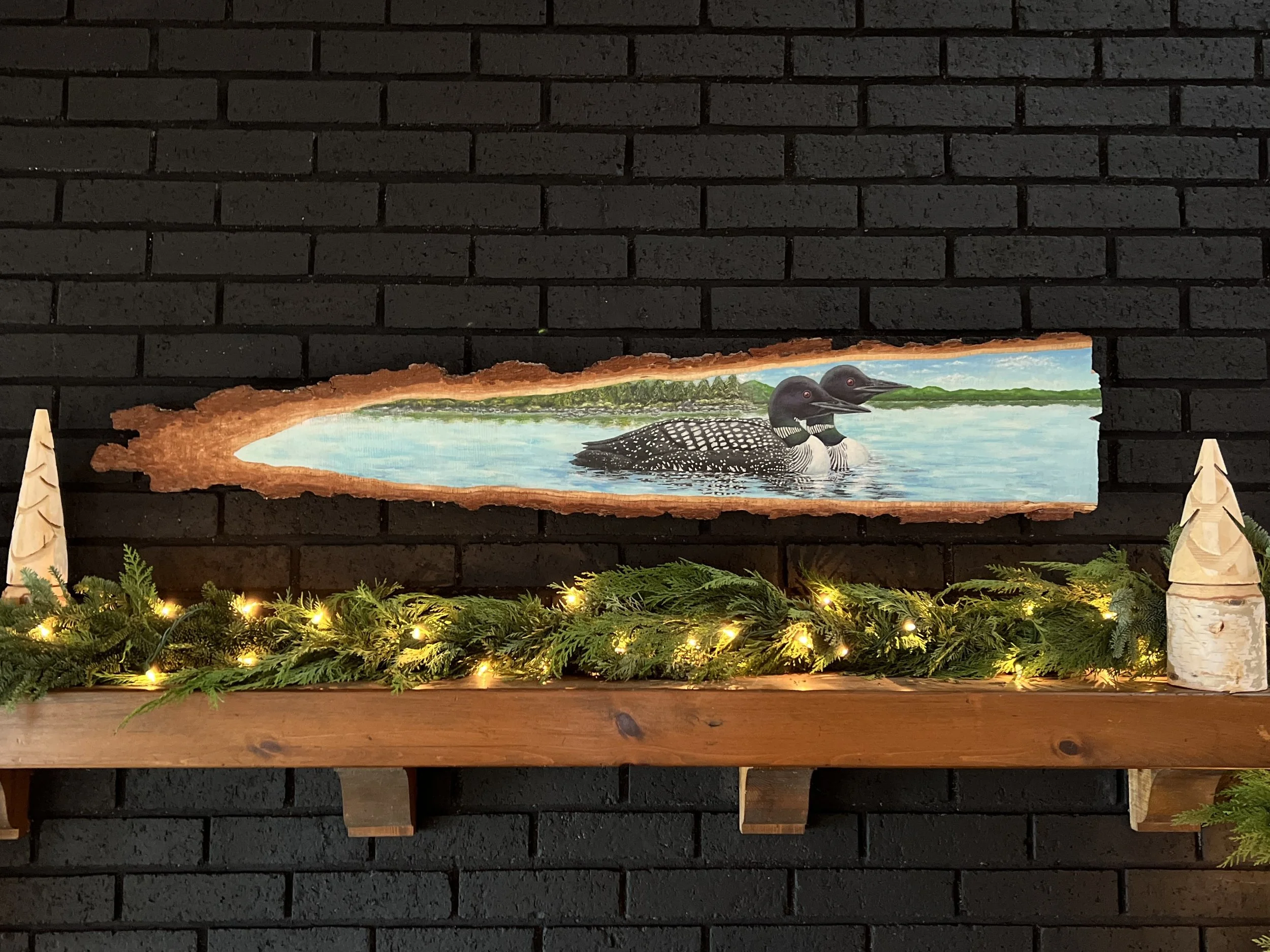 Crystal Lake Loons - Acrylic on Pine slab 40”x12”