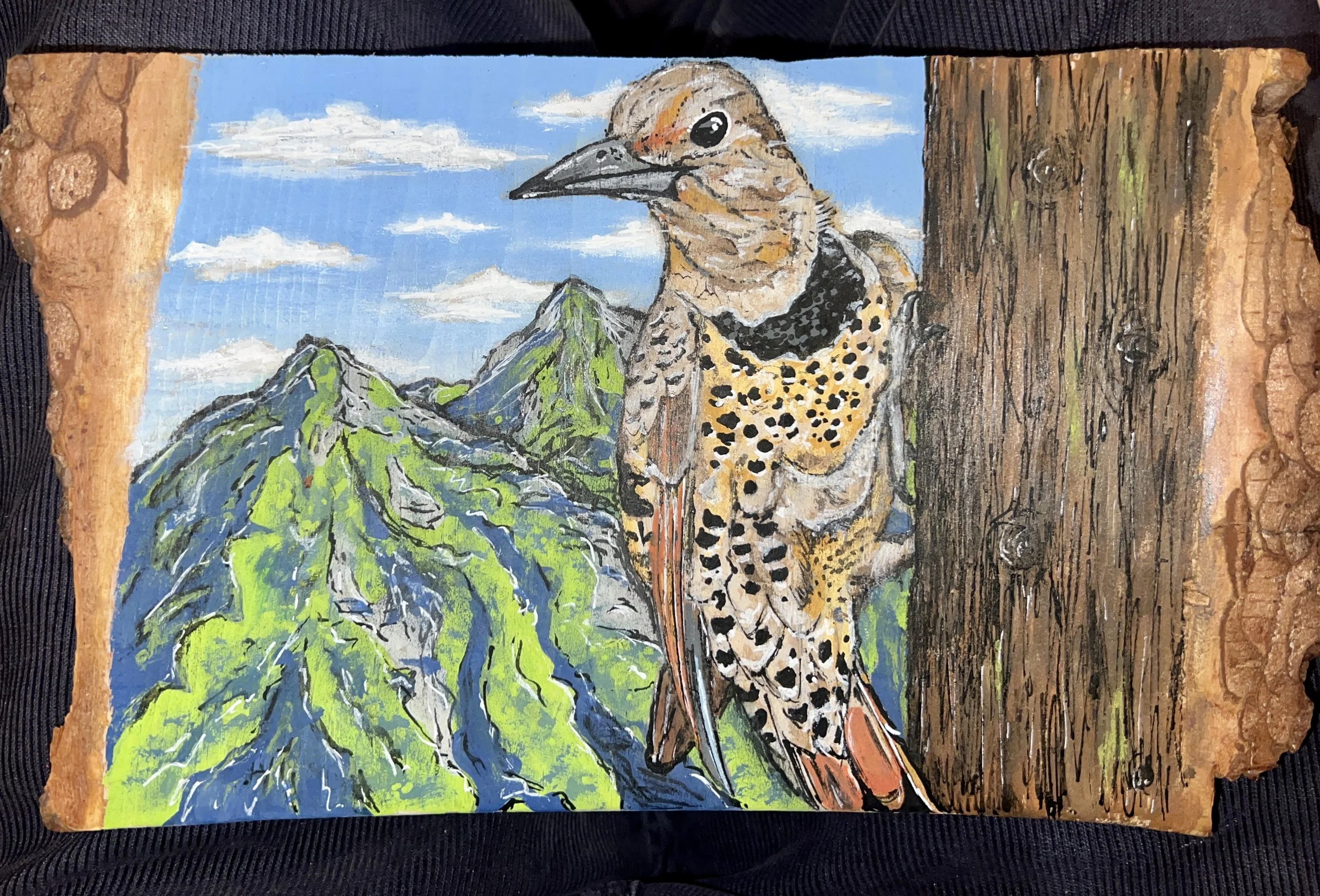 Northern Flicker - Acrylic on pine slab 4"x6”